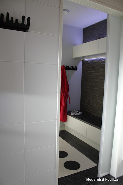 Oijoi, teillä on kyllä tosi kiva kylpyhuone. Oon niin kateellinen tuosta pukuhuoneesta. 🙂