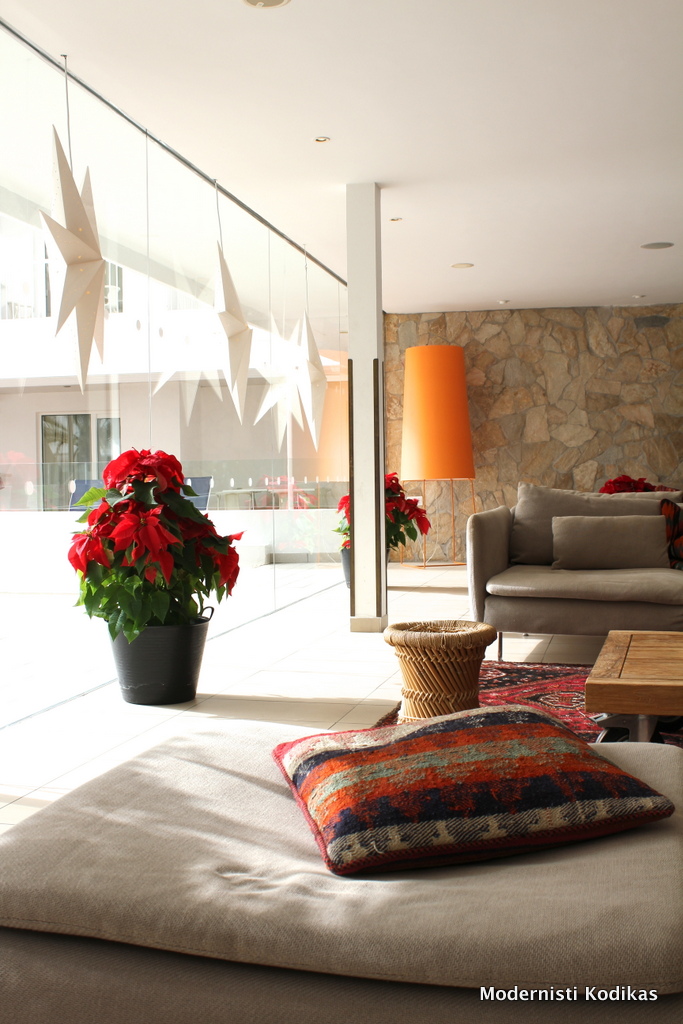 Visuaalisena ihmisenä minulle on merkitystä myös sillä, miltä hotelli näyttää. Kauniissa ja silmää miellyttävässä ympäristössä rentoudun paremmin. Sunwign Arguineguín Seafrontin sisustus oli modernia ja siinä näkyi tämän päivän trendit. Kalusteet olivat selkeälinjaisia ja tekstiileistä löytyi marokkolaisvaikutteita.