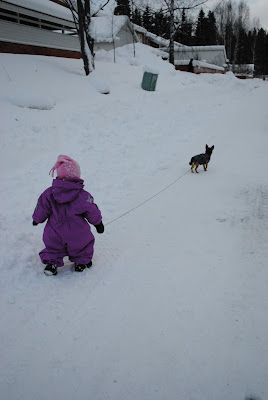 Pienen lapsen ja pienen koiran perheessä saa olla tarkkana, ettei kumpikaan pääse satuttamaan toista. Ihana ja hauska on meidän Hugo, tärkeä osa perhettämme. Ihan omanlaisensa persoona.
