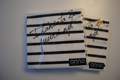 Graafiset mustavalkoraidalliset servetit olivat yhtä aikaa kauniit ja edulliset. Tämä kuosi sopii niin arkeen kuin vähän juhlavampaankin kattaukseen.
