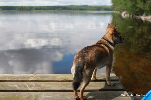 Tässä on se varsinainen vahti- ja pelastuskoira! Uimassa ollessani Hugo sai jonkun sätkyn ja hyppeli ensin rantakiviä pitkin,  jonka jälkeen se päätti hypätä järveen ja uida pelastamaan ”pulassa” oleva emäntä. Aikamoinen touho kyllä chihuahuaksi <3.