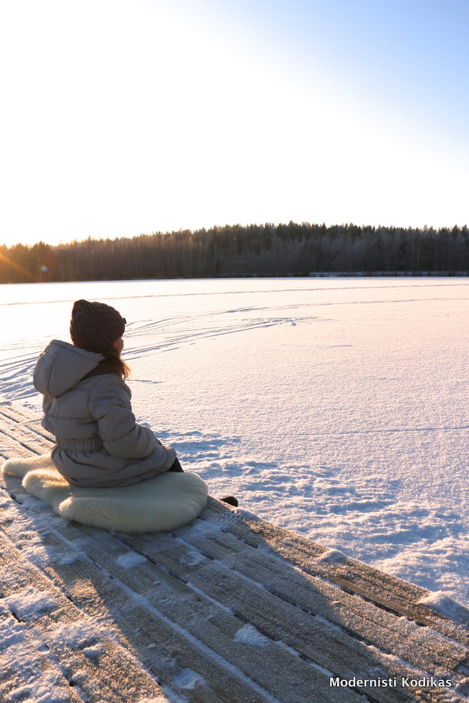 On kylmää, mutta niin kaunista. Kuinka onnekkaita olemmekaan, kun saamme nauttia neljästä vuodenajasta. Omat lempparini ovat vuorossa seuraavaksi, kevät ja kesä. Kun se pitkä pimeä syyskausi on vihdoin selätetty, nautin kyllä täysillä tästä talvestakin. Teimme tytön kanssa pienen retken jäätyneelle järvelle.