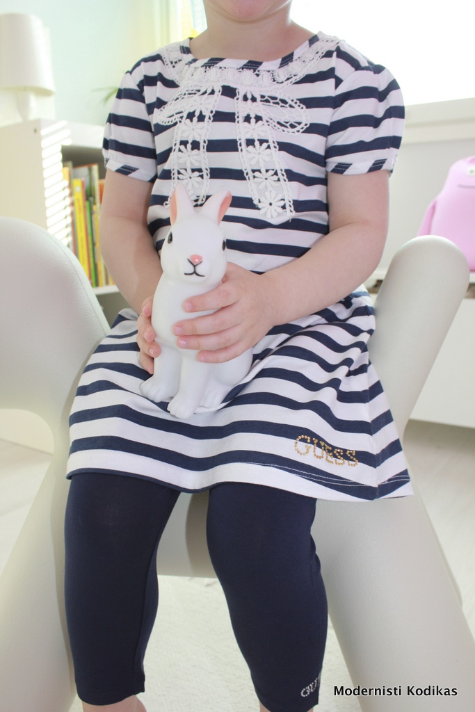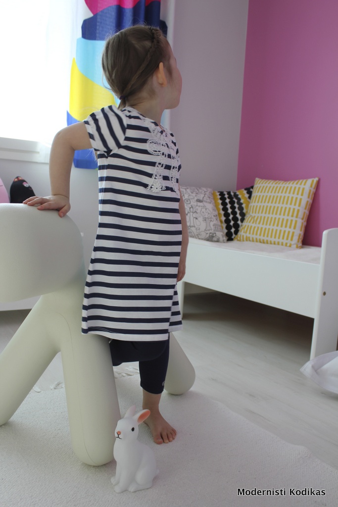 Miten aikuisille ei ole tuollaista samanlaista raitamekkoa! Höh. Ihanan keväinen pikku prinsessa. 🙂