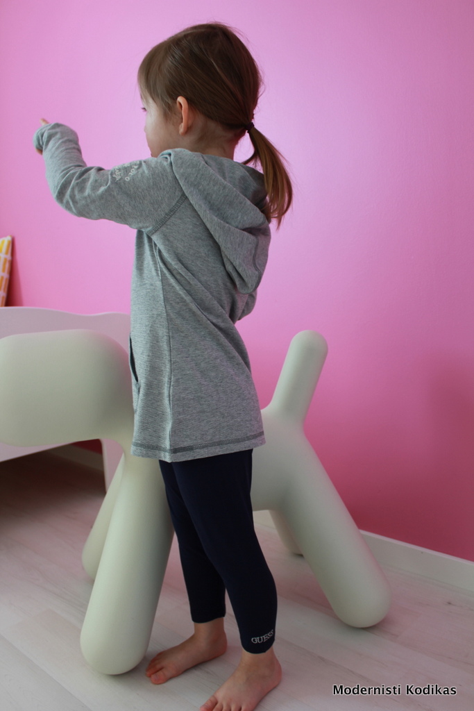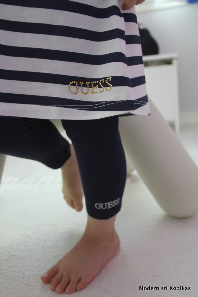 Mekon kanssa samaan settiin kuuluu pehmeät ja joustavat Guessin capripituiset legginssit, jotka ovat meidän tytölle vielä pituuden puolesta lähes täysimittaiset.