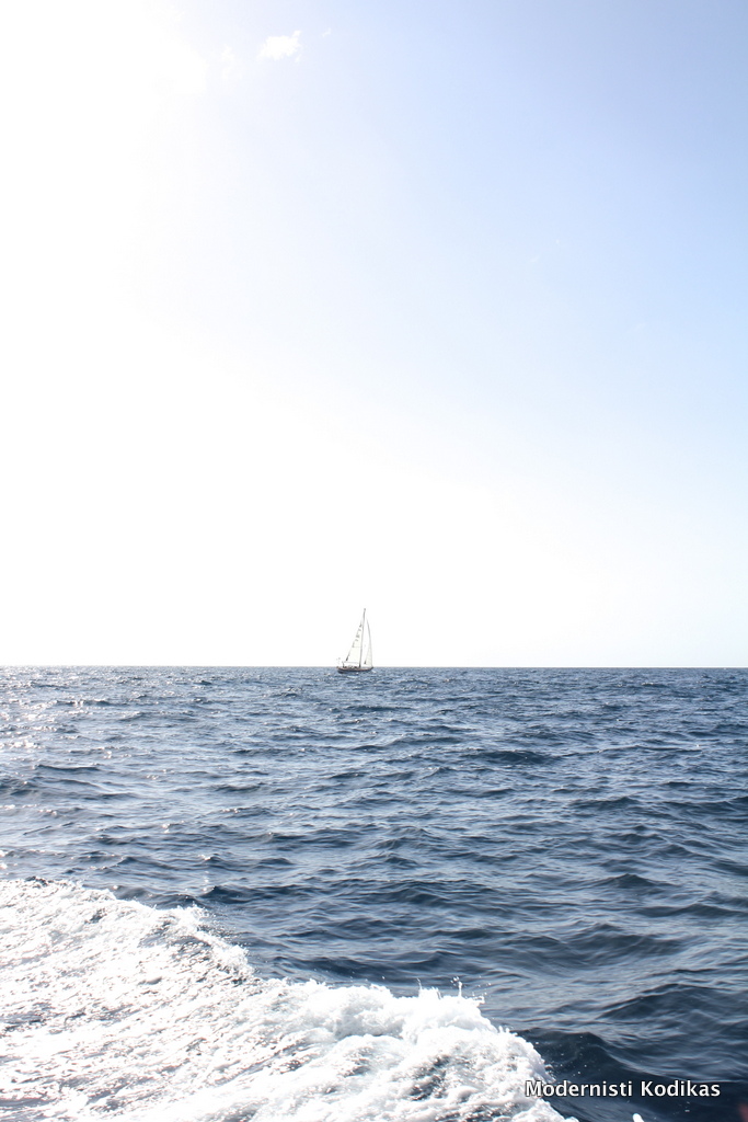 Tunsin huteraa oloa ja nostin katsettani kohti horisonttia. Samassa tiirailin mahdollisia delfiiniparvia ja jokainen kauempana heilahtava vaahtopää näyttäytyi silmissäni evänä. Myös muiden turistien hymyt hyytyivät ja  paatti vaan paukutti aalto aallolta kohti avomerta.