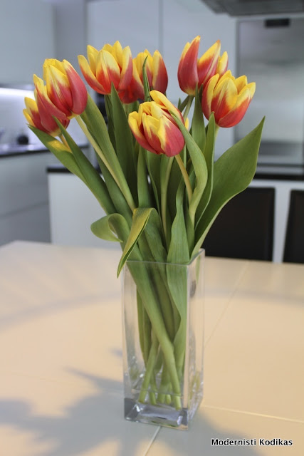 Melkein kaikissa blogeissa alkaa jo näkymään kevään merkkejä, ihanaa! Kukat ovat kyllä yksinkertainen, mutta erittäin toimiva tapa tuoda hieman piristystä kotiin 🙂 Tykkään!