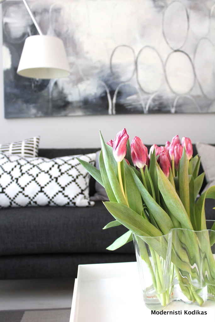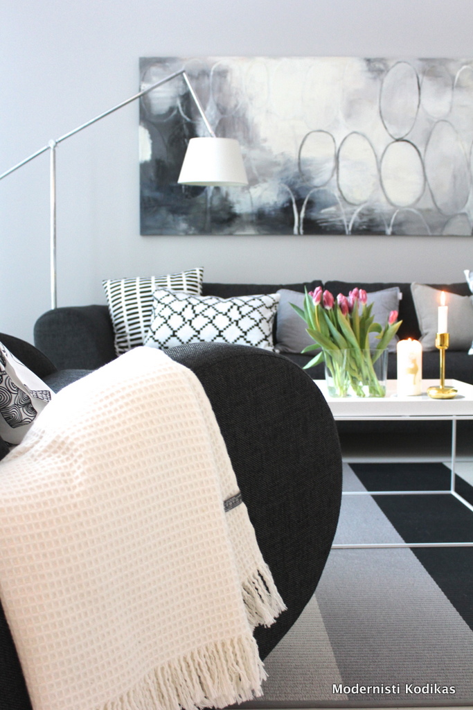 Siihen liittyen: mitä materiaalia olohuoneen lattianne on? Me olemme harkinneet valkoöljyttyä/-lakattua tammea tai saarnia yksi- tai kaksisauvaisena. Vähitellen tulee aika tehdä päätöksiä ja tuleekin katsottua lattiamateriaaleja joka paikassa, myös blogien kuvissa.