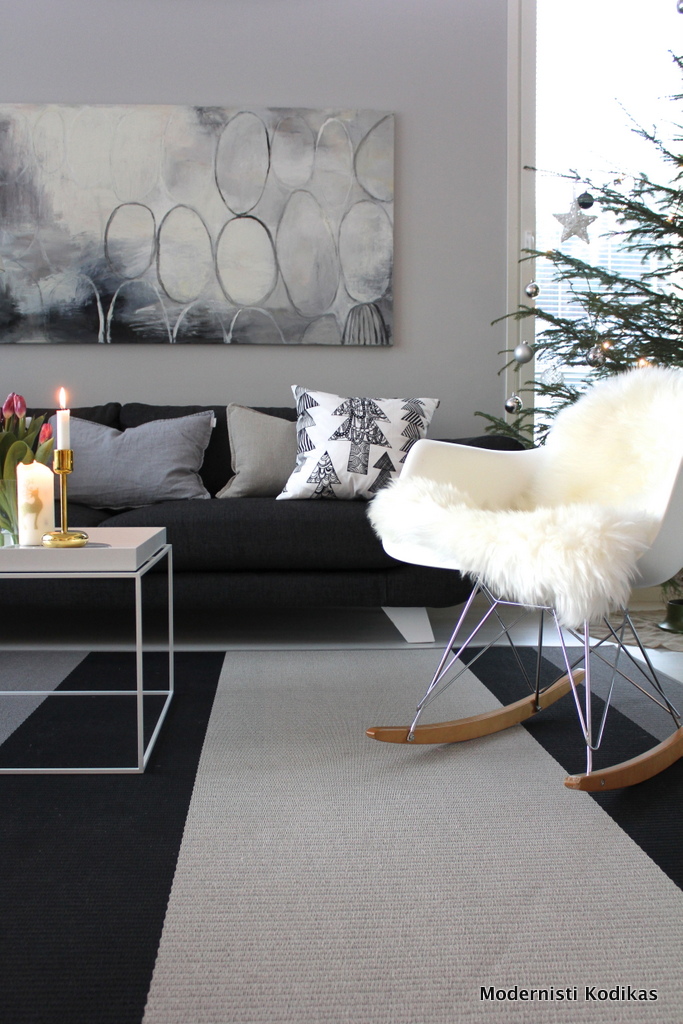 Koska joulu 2013 alkaa olla enemmän muisto-osastoa, haluan ikuistaa tänne blogiini olohuoneen jouluilmeen. Se on kuusta ja paperitähteä lukuunottamata niin vähän jouluisa, että lookilla pötkitään mukavasti pitkälle tammikuuhun. Kevätsisustuksen suunnittelu kuulostaa sitä paitsi heikohkolta vitsiltä, sillä talvi ei ole vielä edes päässyt alkamaan. Tänään oli ehkäpä vuoden pimein ja synkin päivä, josta ei olisi selvitty ilman huumoria. Kä-sit-tä-mä-tön pimeys. Kyllä me suomalaiset olemme aika sissejä, kun tästä ajasta selviämme. Eikä ihme, että kevät saa meidät niin sekaisin. Olemme sen kaiken hullutuksen ansainneet 🙂
