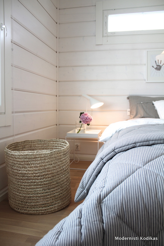 En tiennytkään olevani hirsitaloihminen ennen kuin kävin tässä talossa 😀 . Aivan ihana kohde! Sisustus oli kokonaisuutena messutaloista eniten omaan makuuni – modernia, vaaleaa, kodikasta. Ja niin monen monta ihanaa yksityiskohtaa! Otin hirmuisen määrän kuvia sisältä omaan ideakansioon talletettaviksi.