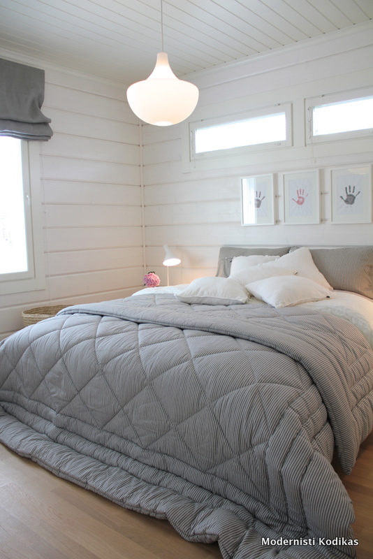 Vanhempien makuuhuoneessa vallitsi rauhallinen tunnelma. Muhkea petaus kutsui pötkähtämään sänkyyn ja pienet kädenjäljet seinällä kertoivat eletystä elämästä.