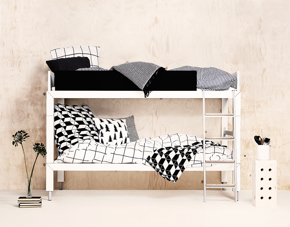 Lundia Lofty on raikas yhdistelmä valkoista ja puuta. Jatkojaloilla sängystä kasvaa parvisänky, jonka alle mahtuu vaikkapa työpiste tai vaatekaappi. Kerrossänky syntyy kahdesta perussängystä ja väliosasta. Pienemmille nukkujille turvaa tuovat suojalaidat.