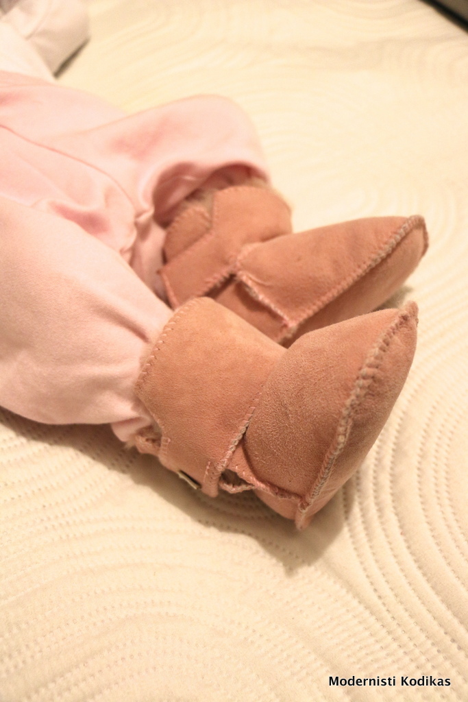 Pieni, ihana ja ihmeellinen. Siinä muutama adjektiivi kuvaamaan vastasyntynyttä kummityttöämme. Talvivauvalle oli mukava antaa jotain suloista, pehmeää ja lämmintä ja hän saikin Shepherdin tossut. Aito lampaannahka pitää huolta pikkuruisista varpaista ja tarranauhakiinnityksellä ne on helppo laittaa jalkaan. Siinä vaiheessa, kun tyttö raotti luomiaan ja kurkisti minua sirrillään olevilla silmillään, sydämessäni läikähti. Muutama sekunti täynnä onnea ja täydellistä hetkessä elämistä, johon pystyvät vain vastasyntyneet.