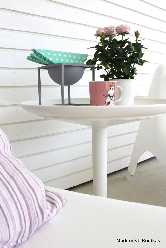 Kesäkuussa vietimme aikaa mökillä ja tapasin ensi kerran Inspired by love-blogin Sannan. Fiilistelin kummin kunniatehtävää  ja hempeilin väreillä terassin sisustuksessa. Ostin alesta ihanat Minna Parikan ballerinat, joita ulkoilutin aktiivisesti erilaisissa kesäriennoissa.
