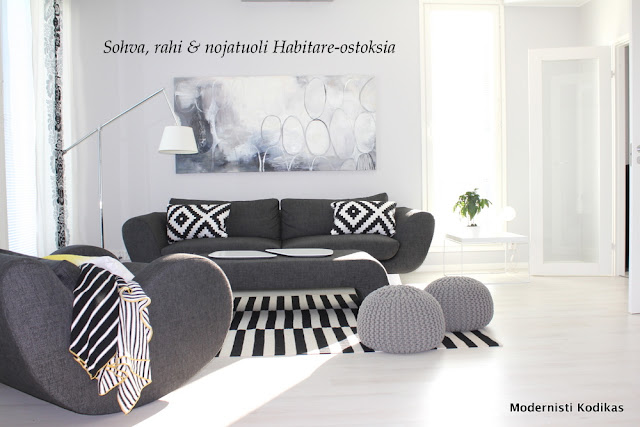 Yksi sisustusvuoden kohokohdista eli Habitare-messut lähestyvät. Silloin kun rakensimme taloamme, kolusin messut huolella läpi ja se kyllä kannatti. Olohuoneemme Moon-sohva ja Galileo-nojatuoli ovat Habitare-ostoksia kahden vuoden takaa. Saimme niistä mukavan alennuksen ja kuljetuskin järjestyi muuttopäiväksi tänne Keski-Suomeen. Uutuuksien ihailemisen lisäksi messuilla voi täsmähankinnoilla säästää selvää rahaa.