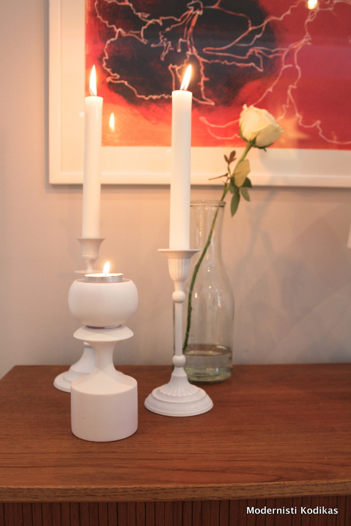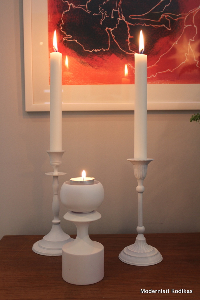 Ompas kivan näköinen kynttiläkollaasi. Mä olen myös katsellut kynttillänjalkoja kirppareilla sillä silmällä, mutta ei mitään nappilöytöjä ole tullut vastaan.