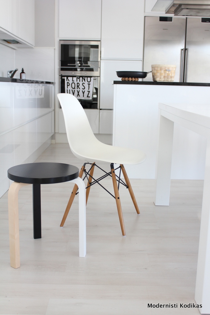 Eamesit ovat liian matalat ainakin meidän ruokapöytään nähden, enkä muutenkaan niistä haaveile keittiöön. Tuo työhuoneen tuoli oli vähän kuin mallikappale valkoisesta tuolista näissä kuvissa 🙂