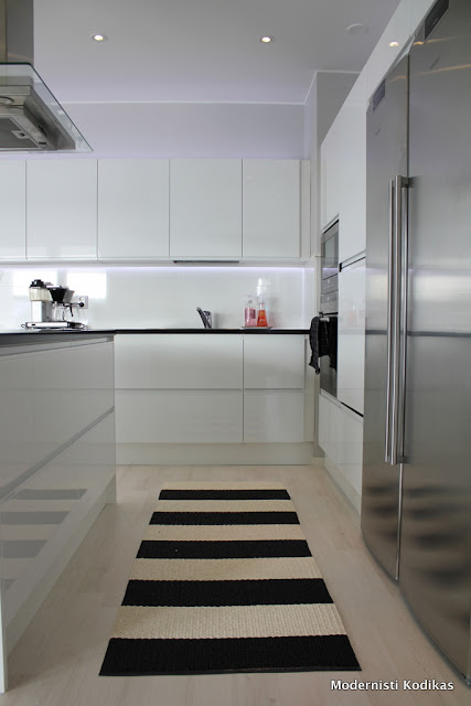 Mistä on keittiön mustavalkoinen raitamatto? Mitä materiaalia?