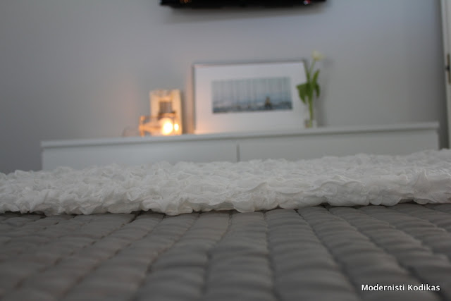 Sellaista vähän valoisampaa ilmettä meidän makuuhuoneessamme. Investoinnit ovat alle 30 euroa, joten aika pienellä rahalla sain ilmettä päivitettyä. Yleisfiilis on edelleen rauhallinen, vaikka vähän väriäkin on huoneeseen eksynyt.