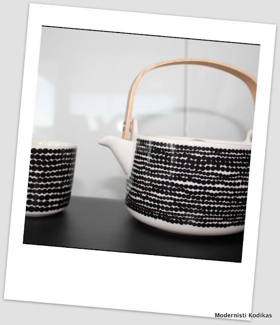 Oih, iskee iskee (eikä varmaan tullut yllätyksenä, heh)! Minusta Secton valaisin toi keittiöönne ehdottomasti sitä jotain, ihanaa lämpöä graafisuuden keskelle. Ja kaikki nuo muutkin pienet puiset elementit ovat hienoja. Tuo teekannu on tosi kaunotar, annoin sen pari vuotta sitten siskolleni lahjaksi, mutta itse en moista omista.