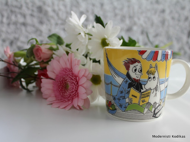 tunnustan en tykkää muumeista en oo koskaan tykänny.No kaapista kuitenkin löytyy yksi muumimuki, Vilijonkka. Muutama joulu sitten työnantaja antoi jokaiselle muumimukin joka kuvasi saajaansa ja kun en tiennyt muumeista mitään niin pakko oli googlata miten tuo Vilijonkka minuun liittyy ja selvishän se ”pitää siisteydestä ja järjestyksestä”