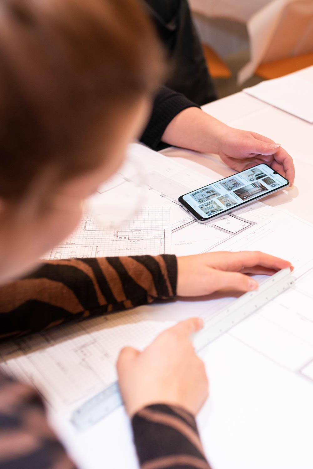 Maru tarjosi illan aikana pikakonsultaatioita ja oli ilo nähdä, kuinka moni oli tullut paikalle pohjapiirroksen tai ideakuvien kanssa. Kaikken paras hetki sisustussuunnittelijan käytölle onkin, kun remontti tai koti on vasta suunnitteilla. Tässä vaiheessa monet ratkaisut voidaan toteuttaa kustannustehokkaasti tai samalla hinnalla kun se ”perusratkaisu”. Maru vinkkaili toimivista ja kauniista pintamateriaaleista ja kodin toimivista mittasuhteista.