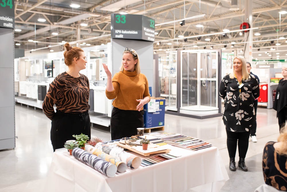 Illan tavoite oli olla rento ja inspiroiva. Myymäläpäällikkö Nooran tervetulosanojen jälkeen pidimme Marun kanssa pienen puheenvuoron, jossa kerroimme sisustuskuulumisiamme.