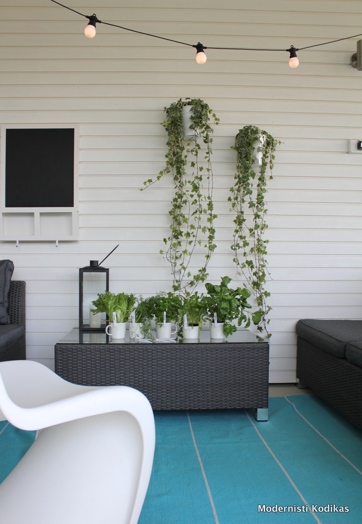 Tässä googlettelin netistä terassinsistus inspiraatioita ja tupsahdin tänne. Ihanan näköiset nuo valuvat muratit. Pitäisiköhän oma villiintynyt murattini ulkoistaa kesäksi terassille…Hmm..