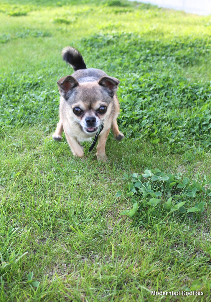 Laita nyt jossain vaiheessa kuvaa siitä hyötykasvipenkistäsi 🙂 Onkos teidän Hugo samanlainen kuin mun Helmini (myös chihu) että rakastaa aurinkoa ja lämmintä. Etsii aina aurinkoisen paikan ulkona ja on hyvin tyytyväisen näköinen siellä 🙂