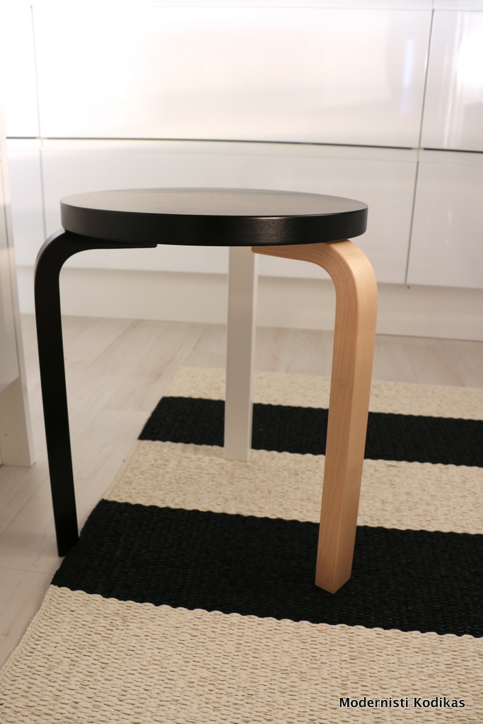 Mieheni katseli viikon verran uutta Artek Aalto 60:tä , kunnes totesi lakonisesti: ”Kyllä on kummallisen näköinen jakkara. Ihan kun joku olisi unohtanut laittaa siihen yhden jalan”.