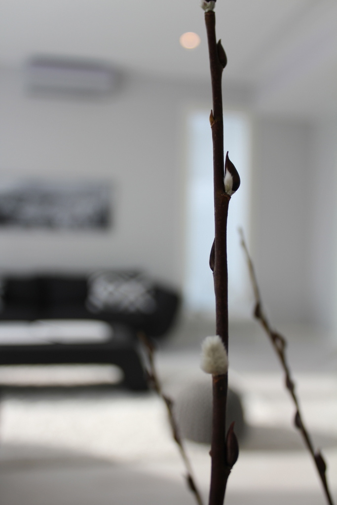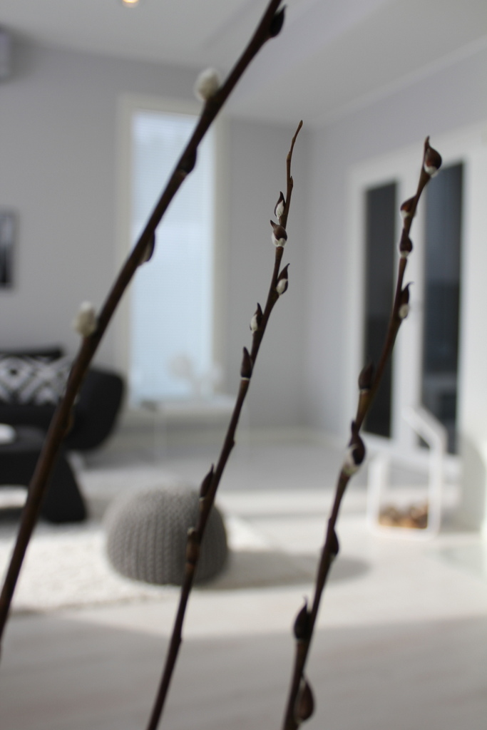 Minä olin laiska ja hain pajunoksat läheisestä kukkakaupasta.. Ensi vuonna lupaan uhmata hankia!