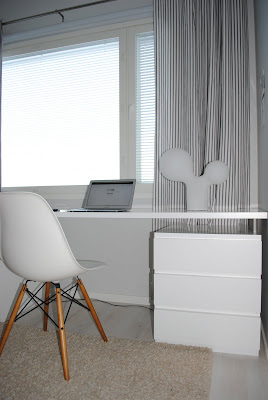 Palapelin palaset alkavat loksahdella kohdalleen. Iso kiitos kuuluu kaikille ideoita ja kommentteja antaneille! Huonekalut jo pyöräytin uuteen asentoon ja huone tuntuu tosi toimivalta. Yksityiskohtia pitääkin hioa vielä hetkinen.