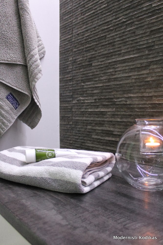 Kiitoksia Blondi! Pidän itsekin tuosta kivipinnasta, meillähän on eteisessä sama laatta vaaleana 🙂