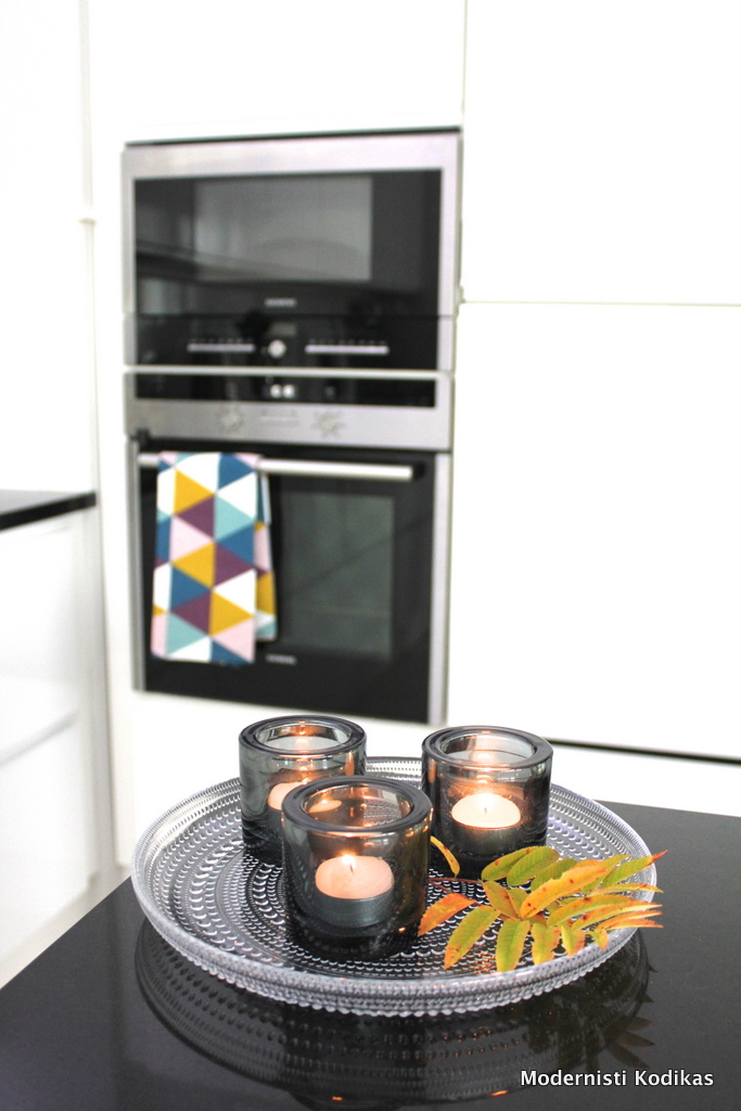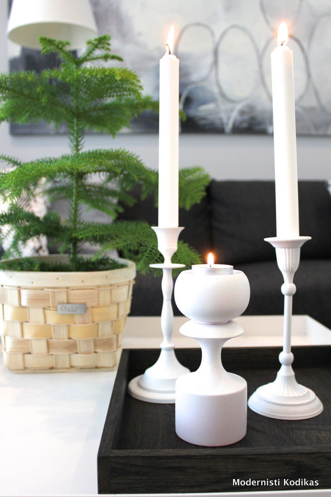 Tähän aikaan vuodesta kynttilävillitykseni on huipussaan. Virittelen kotiin sekä tuikkuja että kruunukynttilöitä, joiden valo on omiaan rauhoittamaan tunnemaa. Meillä ei ole kalliita designkynttilänjalkoja, mutta saman asian ajavat edullisemmat markettiostokset, kirpputorituunaukset sekä Iittalan perusklassikot. Nyt myrskytuulien aikaan meillä on ollut kaksi sähkökatkoa ja kynttilävarastot ovat olleet tarpeellisia. Viime sunnuntaina Oskari-myrsky vei sähköt pariksi alkuillan tunniksi. Toisaalta oli aivan ihanaa olla vain kynttilöiden loisteessa pieni hetki.