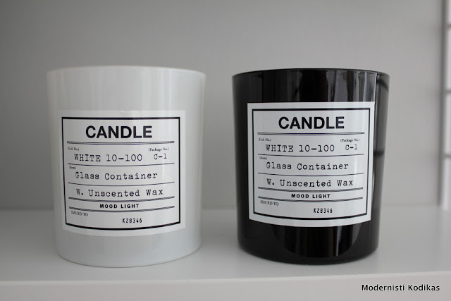 Nämä kynttilät nappasin matkaani H&M Home -myymälästä. Musta ja valkoinen purkki kiiltävällä pinnalla huutelivat nimeäni hyllystä, enkä voinut jättää niitä kauppaan.