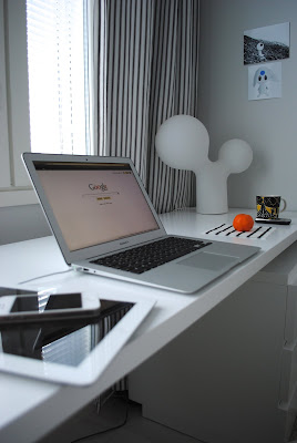 Sitten siihen työhuonedilemmaamme. Meillä on työhuone ja vierashuone yhdistettynä. Tämä tarkoittaa sitä, että 11 neliön huoneeseen tulee mahtua sekä työpöytä että levitettävä sohva vieraita varten. Työpöytänä on Muuramen L-taso yhdistettynä kolmoset-laatikostoon. Työtuolina palvelee tuolirakkauteni eli Eamesin DSW.
