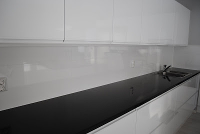 Sain kommenttiboksissa kysymyksen, että mitä materiaalia keittiömme välitila on. Rakennusaikana suunnittelin välitilaan lasia, mutta siihen ei sitten kuitenkaan päädytty.