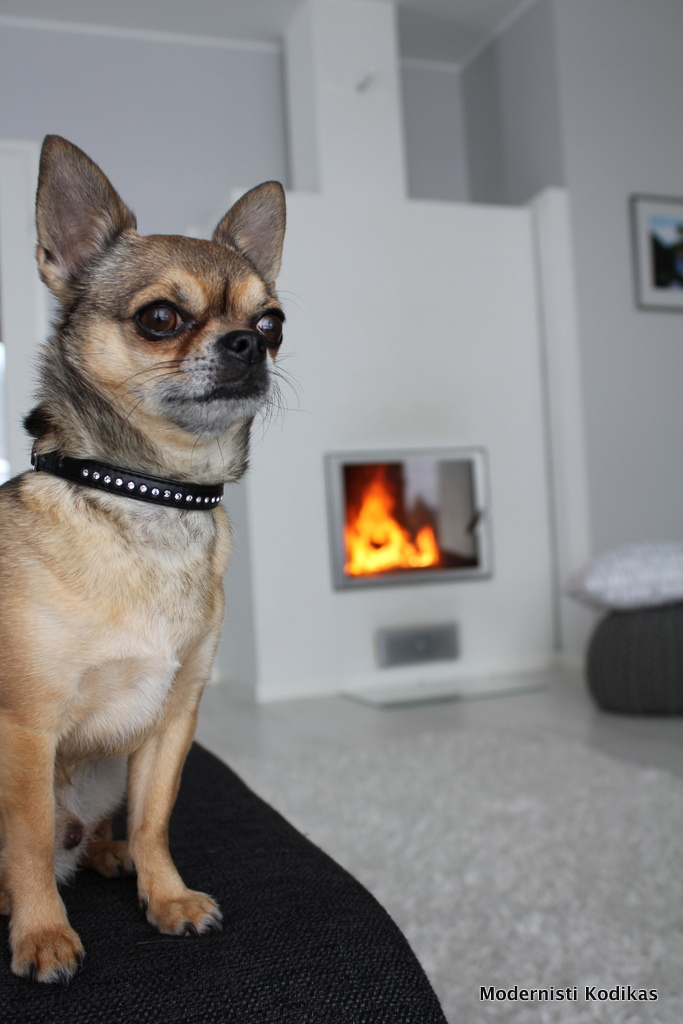 Kuva olohuoneesta tai takkakuva. Ei missään nimessä koiraa.