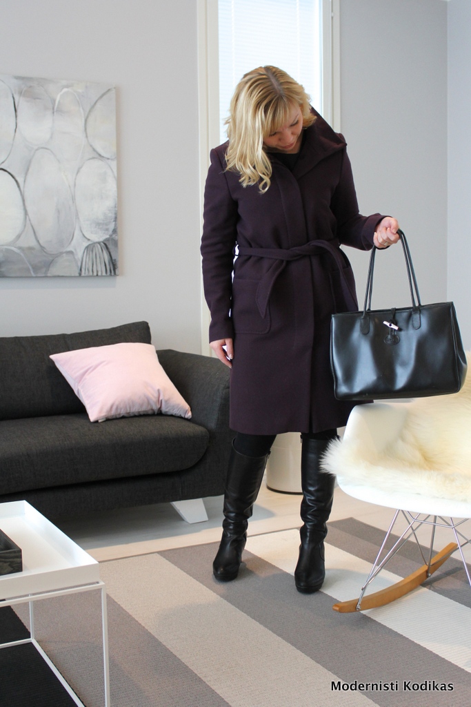 Sitten vain niskaan toinen uudehko lempparivaate eli Filippa K:n villakangastakki. Kainaloon on jo lähes juurtunut Longchampin Roseau-laukku ja jalkaan luottokorkkarit Unisalta (blogiyhteistyö Footwayn kanssa). Hyvät vaatteet tunnistaa siitä, että niitä ei tarvitse päällä enää ajatella ollenkaan.